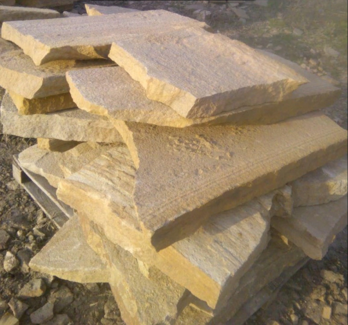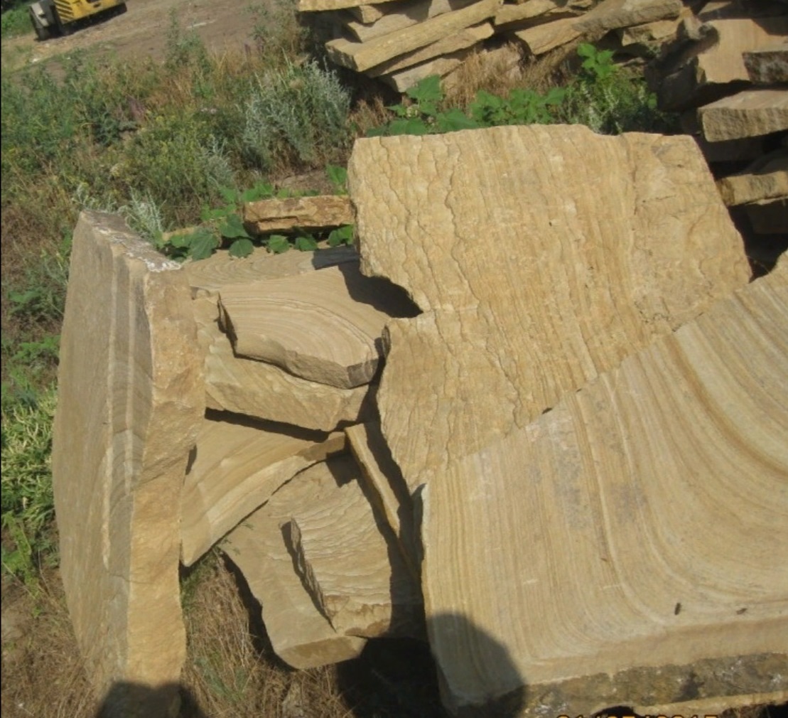 • Kamenclub.ru: Форматный камень (плаха) пошаговая дорожка от 70-150 см (4 -12 см)  купить в Оренбурге плитняк  форматный плаха желтый песчаник 9 000 руб/т   фото КАМЕНЬ КЛУБ