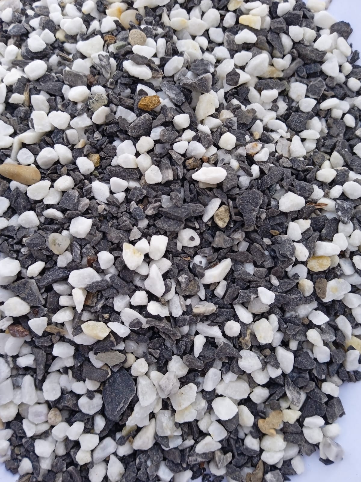 • Мраморная крошка (щебень галтованный микс:: белый-черный) фр.5-10 мм