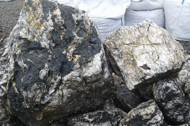 • Kamenclub.ru: Черный гранит - кварцит фр. 100-500 мм.  купить в Оренбурге мрамор гранит черный с белыми прожилками, серый, белый валун скальный колотый 7000 руб/т   фото КАМЕНЬ КЛУБ