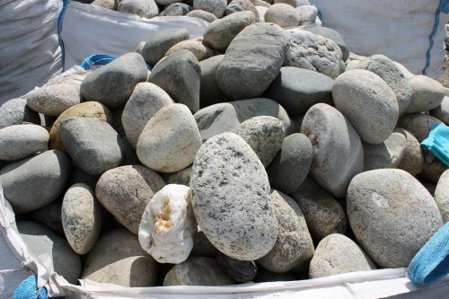 Валуны размером до 400 мм привозят в биг-бэгах. Валуны большим размером привозят навалом в фурах. В последствии их выгружают спецтехникой при использовании тн чалок.